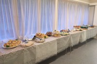 The supper or meeting room has tables attached to the wall for buffet style food. Eight 1 metre square tables are also available in this room. Access is from the hall foyer, and to/from the kitchen.